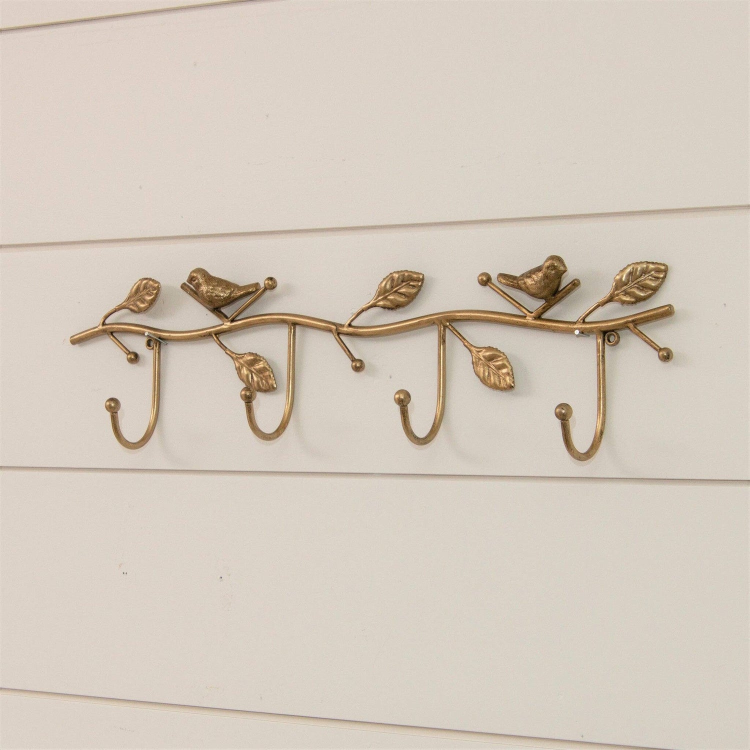 Audrey's Home & Gift presents our Gold Birds On Branch Wall Hooks. This iron piece, measuring 5.5" H x 21" W x 2" D, is more than a simple wall hook. It's a functional piece for your walls, a place to hang your treasured items, and a testament to our passion for crafting beautiful, functional pieces. This product offers superb value for money.