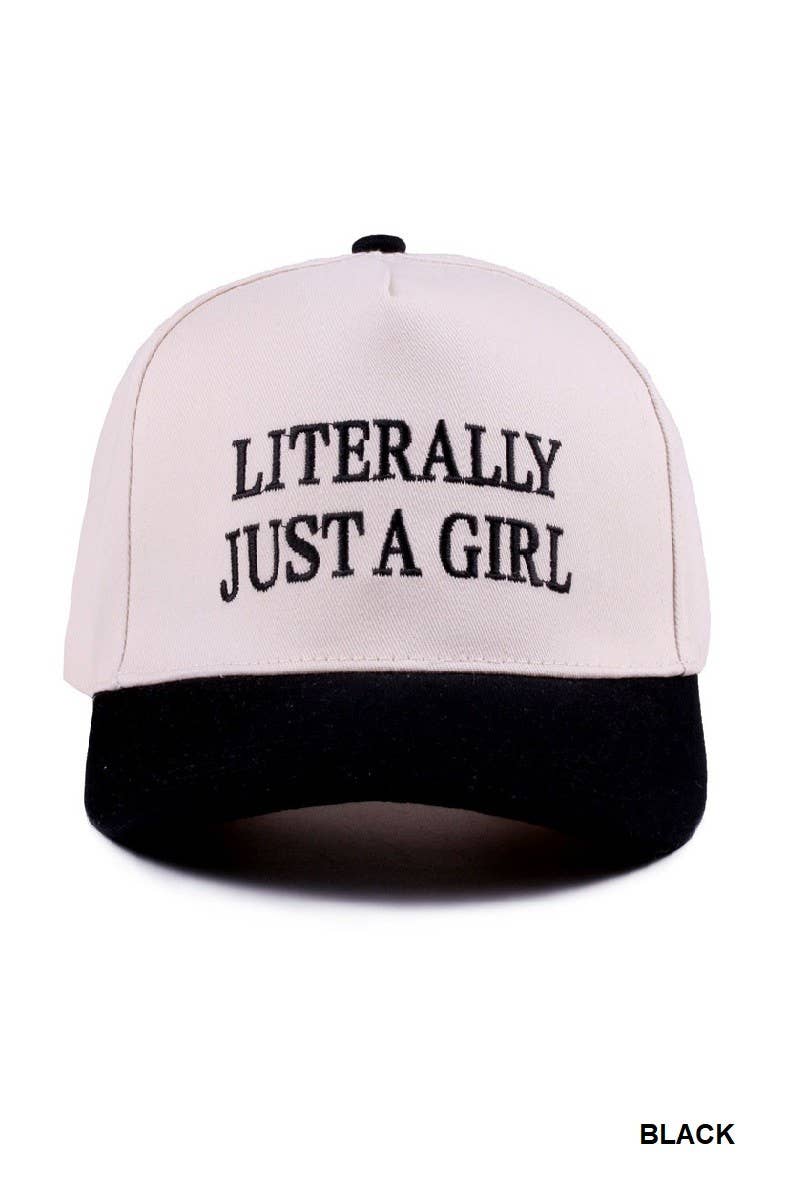 Literally Just A Girl Two Tone Canvas Cotton Cap: BLACK